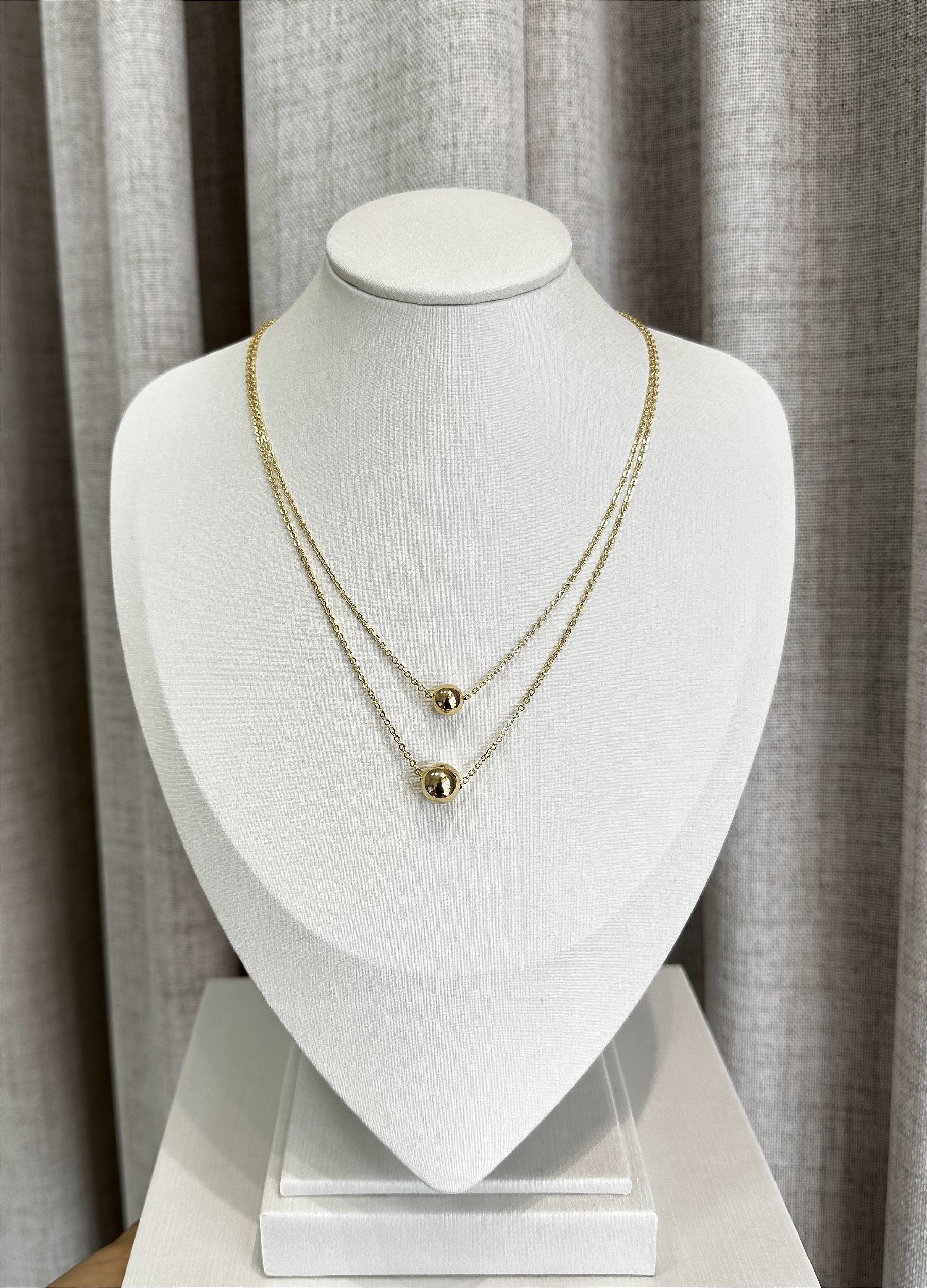Colar Duplo Bolas Dourado, no Banho de Ouro 18 k.