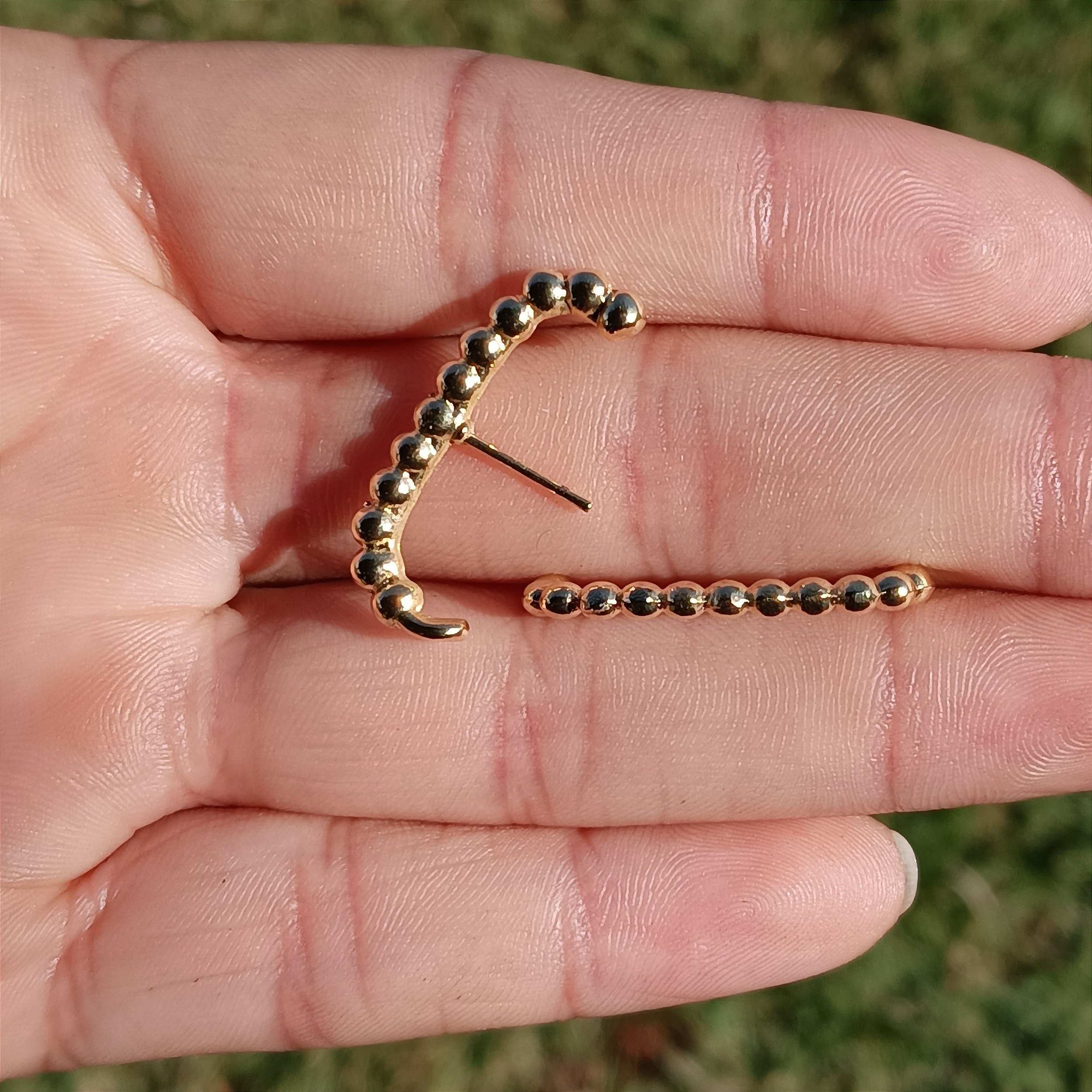 Modelo de Brino Ear Hook, discreto com detalhe de bolinhas, perfeito para combinar com outros brincos ou piercing fake sem carregadar.